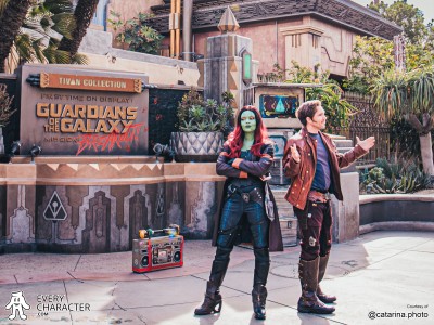 Star-Lord enlists help from the gathered crowd as he pushed the play button on the boombox and encourages everyone to show off their best dance moves in an awesome dance off from his famous mix-tape. As the mix-tape plays Star-Lord helps Gamora to find the music within her to join in.