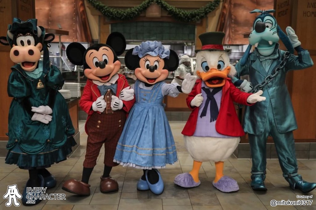 The outfits have until now been incredibly rare to meet in person so this is a real chance to experience the Characters in their Mickey's Christmas Carol outfits up close. Mickey, Minnie and Goofy's outfits have been seen before at Disney's Merriest Nites with Scrooge McDuck now seen in this more formal style red jacket and tie than we had previously seen in this role. Clarabelle is in a green period dress debuting for this event. Storyteller Cafe has gained a reputation for one of the best Character dining options at the Disneyland Resort so be sure to make a reservation before you visit. See photos from this event below.