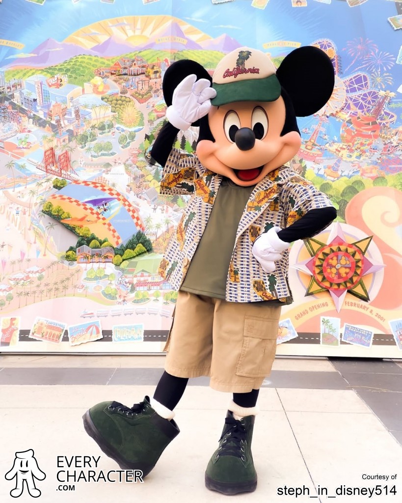 For Disney California Adventure’s 25th anniversary in 2026, Mickey Mouse and Minnie Mouse surprised Disneyland Resort Magic Key holders with a retro come back for the 2001 Sunshine Plaza outfits, refreshed for the anniversary. The updated outfits retain the bright, vacation California style of the early 2000s with some minor color changes to Minnie's shorts from light blue to navy blue, and her t-shirt from light pink to orange. Mickey's outfit stayed true to the original 2001 outfit. Mickey and Minnie regularly greeted guests in Sunshine Plaza prior to the land’s closure on August 29, 2011, ahead of its transformation into Buena Vista Street. Reintroduced exclusively for Magic Key holders in 2026, the refreshed Sunshine Plaza outfits celebrate Disney California Adventure’s history giveing a throwback to commemorate this 25th anniversary milestone.